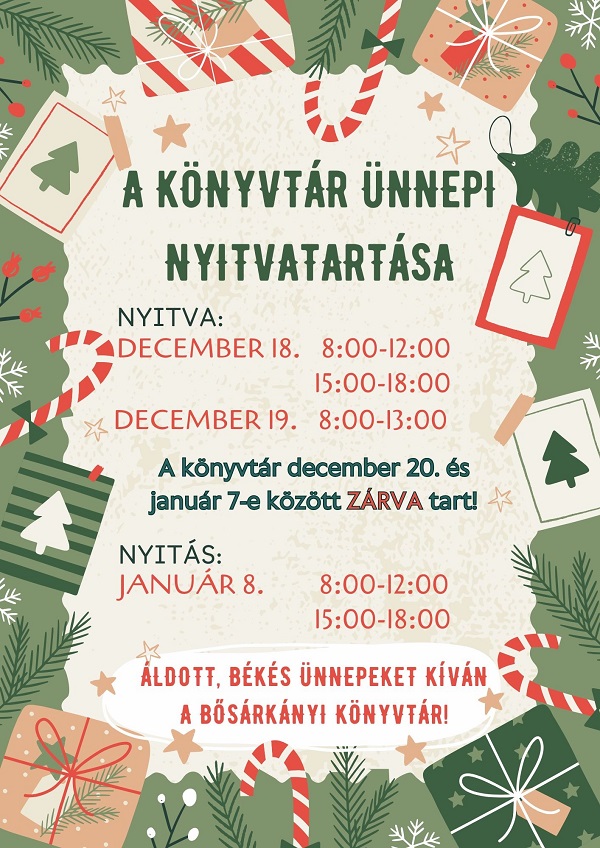 A bősárkányi könyvtár ünnepi nyitvatartása