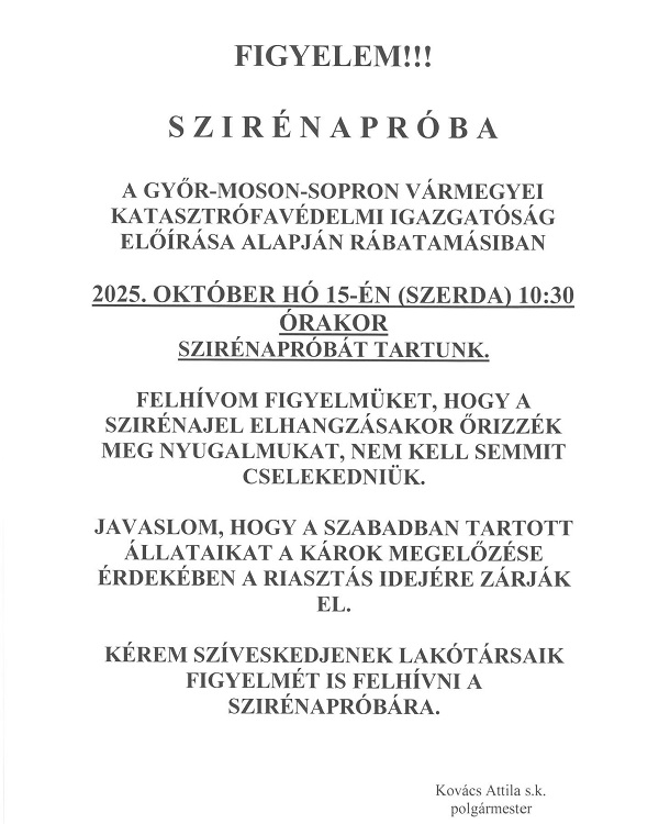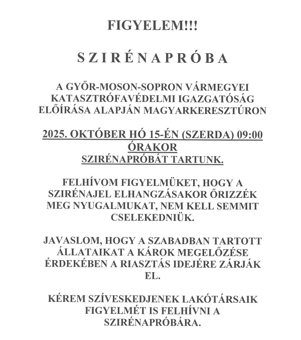 Szirénapróba Magyarkeresztúron és Rábatamásiban