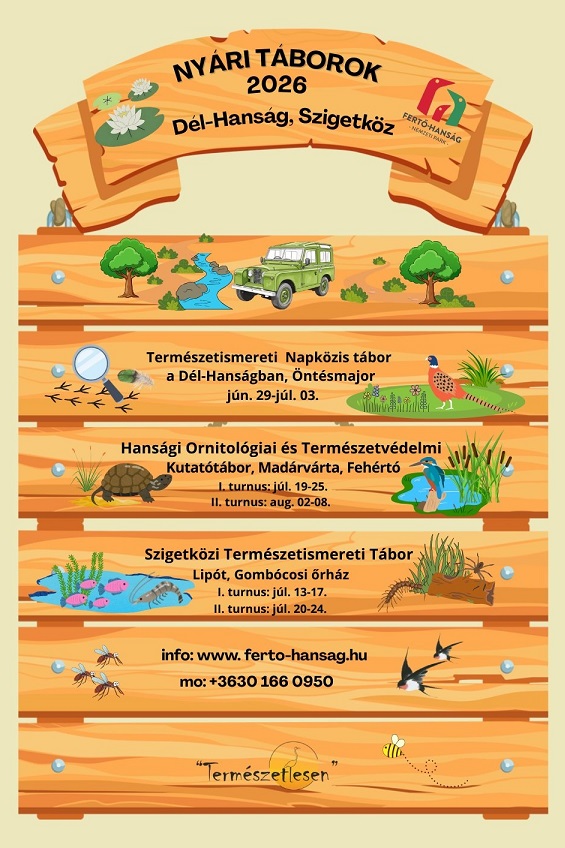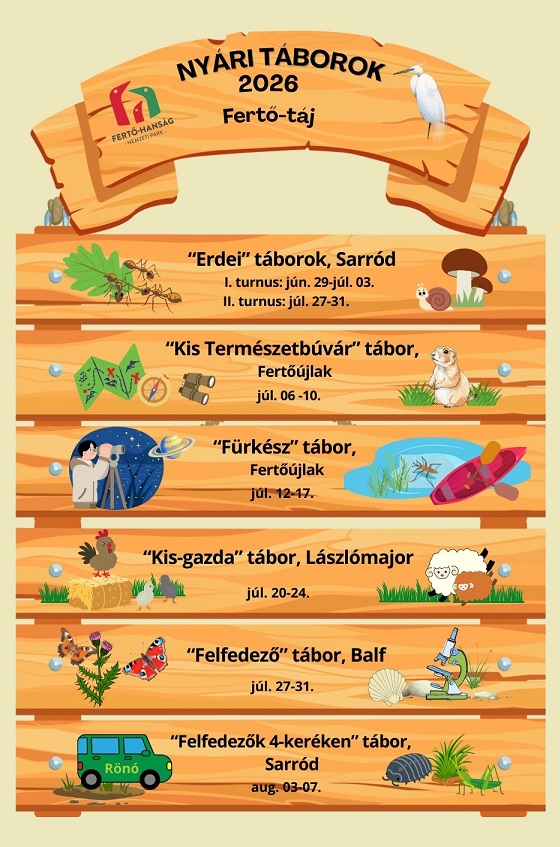 A részletes tábori leírások, letölthető dokumentumok, jelentkezési lapok (határidők) a nemzeti park honlapján, a Környezeti nevelés aloldalon, a "táboraink" menüpontnál találhatók: https://www.ferto-hansag.hu/hu/kornyezeti-neveles.html