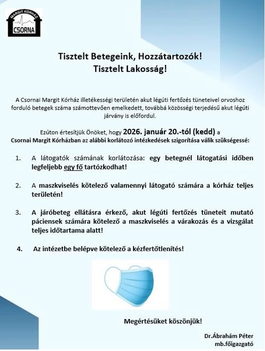 Újra kötelező a maszkviselés a csornai kórházban