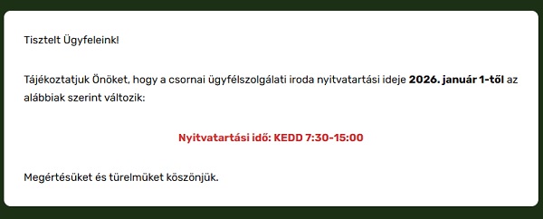 Változott az ügyfélfogadás időpontja Csornán