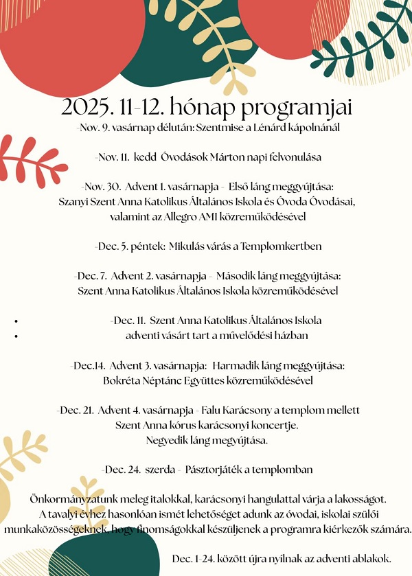 Adventi programok Szanyban