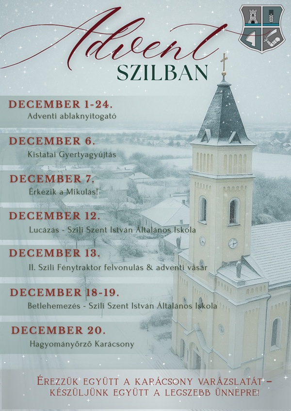 Szil Község Önkormányzata szeretettel vár mindenkit az idei adventi programokra, ahol meghitt hangulat, fények, karácsonyi dallamok, kézműves vásár és forró tea várja a látogatókat.