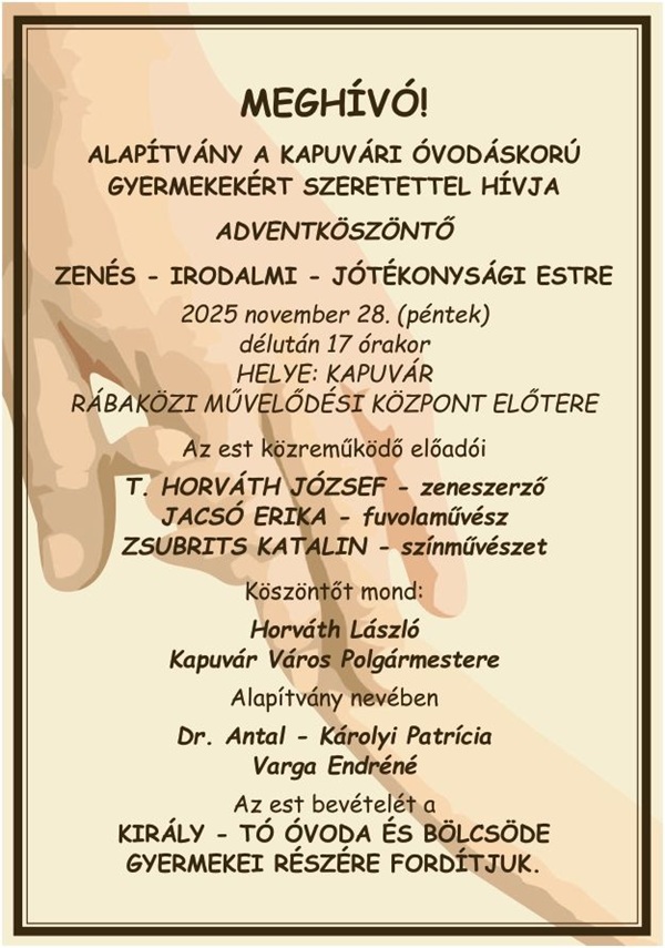 A Kapuvári Óvodáskorú Gyermekekért Alapítvány szeretettel vár minden érdeklődőt.