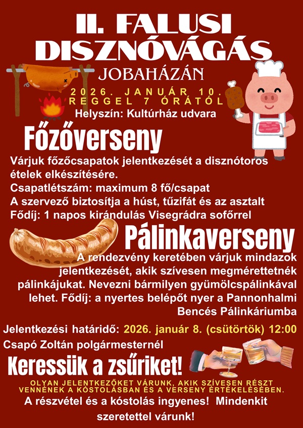 Főzőverseny és pálinkaverseny is lesz a II. Falusi Disznóvágáson.