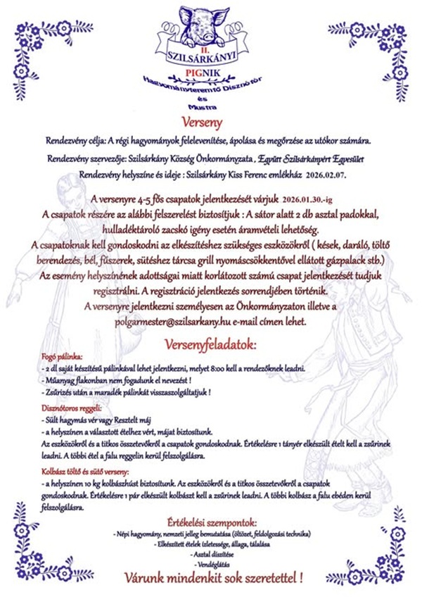 Megrendezésre kerül a II. Szilsárkányi PIGnik. A szervezők 4-5 fős csapatok jelentkezését várják a versenyre.