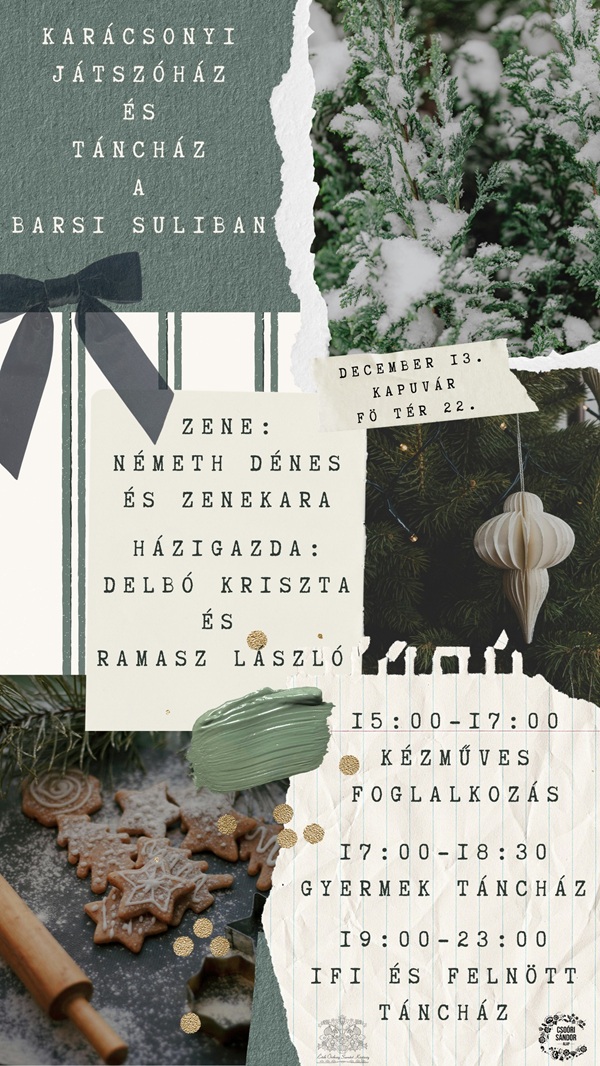 15.00 – 17.00 Kézműves foglalkozás: kukoricacsuhéból díszek készítése, karácsonyi képeslap, gyertyamártás, mézeskalács díszítés