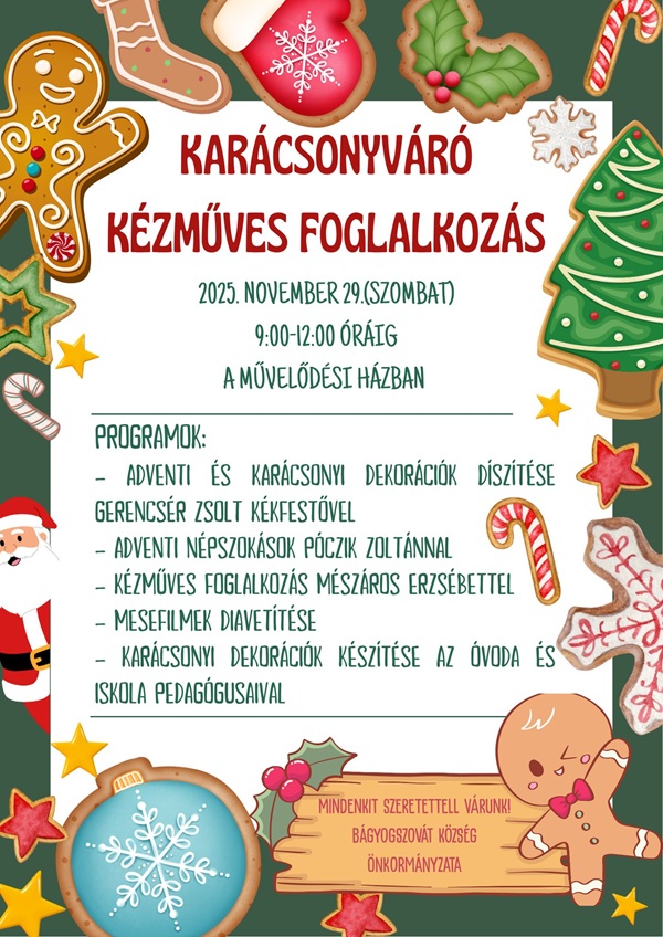 Karácsonyi dekorációk készítésével és diavetítéssel várja a gyerekeket Bágyogszovát Község Önkormányzata.