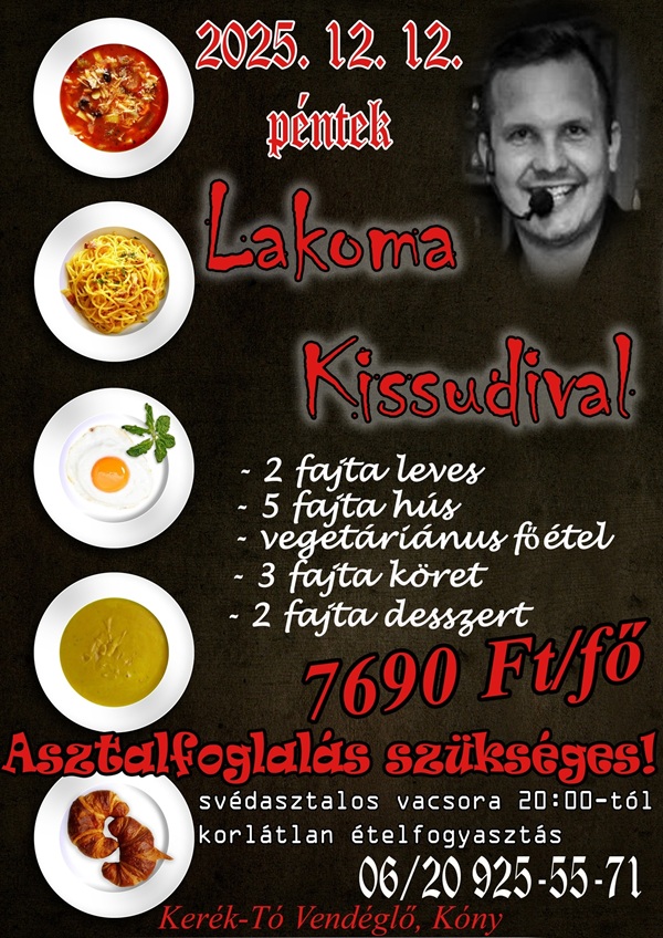 Asztalfoglalás szükséges a 06 20 925 5571 telefonszámon.