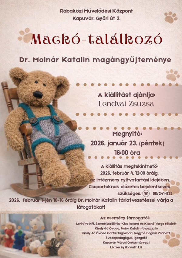 A kiállítás megnyitója január 23-án 16 órakor lesz. Február 1-jén 10-16 óráig Dr. Molnár Katalin tárlatvezetéssel várja a látogatókat.