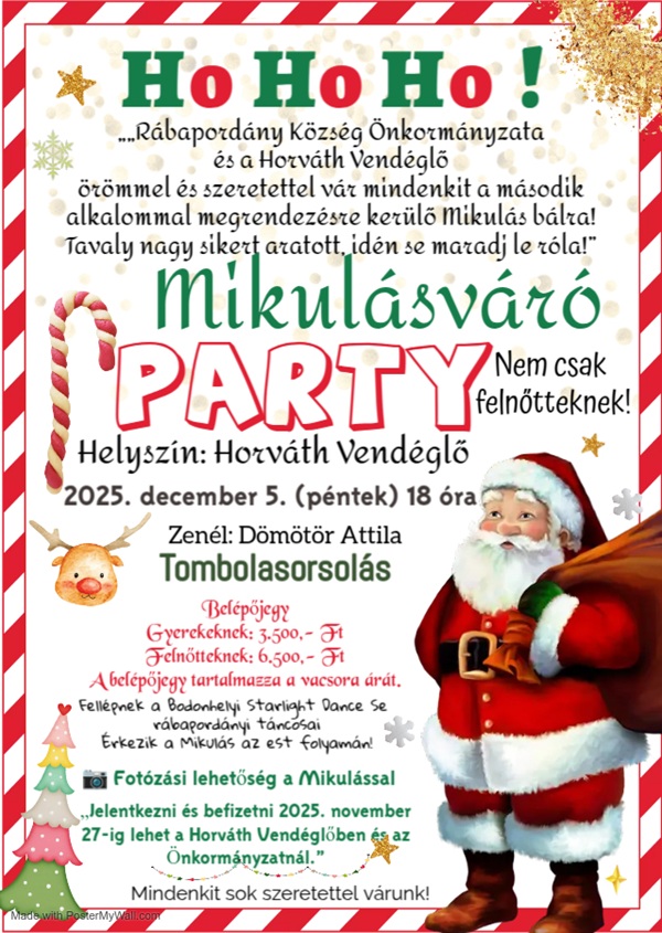 Zenél: Dömötör Attila Helyszín: Horváth Vendéglő Jelentkezni lehet az Önkormányzaton vagy a Horváth Vendéglőben Az est folyamán érkezik a Mikulás is, aki meglepetéssel készül!