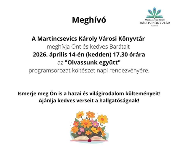 \"Olvassunk együtt!\" - költészet napi rendezvény Csornán.