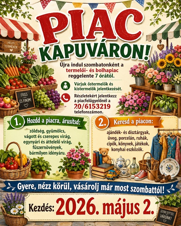 Minden szombaton termelői- és bolhapiac Kapuváron.