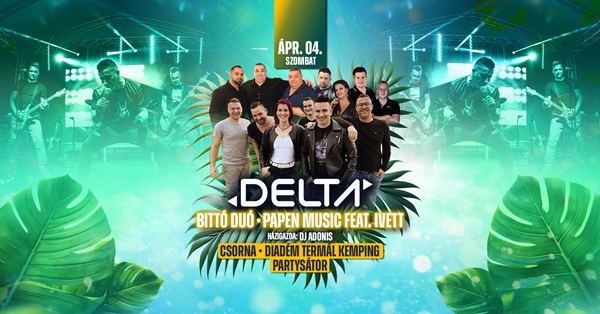 Óriási tavaszi DELTA koncert Csornán, a húsvét hétvégén. Az éjszaka hangulatát további fellépők szinesítik: Bittó Duó Papen Music ft. Ivett Dj Adonis