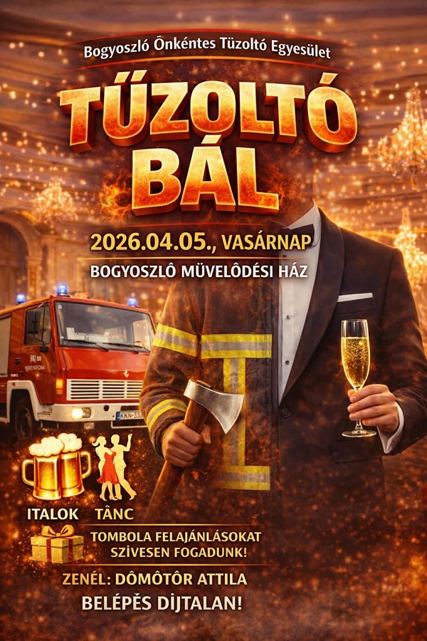 A Bogyoszló Önkéntes Tűzoltó Egyesület szeretettel meghív mindenkit egy felejthetetlen estére!