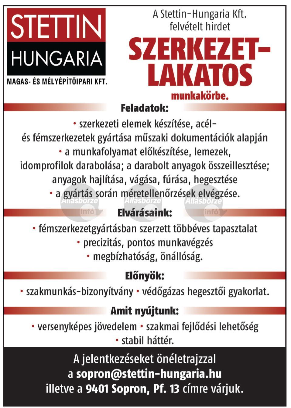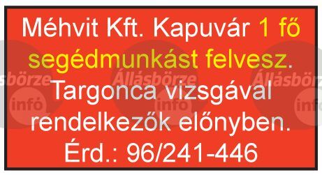 Kapuvári munkahelyre, hegeszteni tudó lakatost keresünk! Érd: 8.00-15.00-ig a 96/778-400-s telefonszámon.