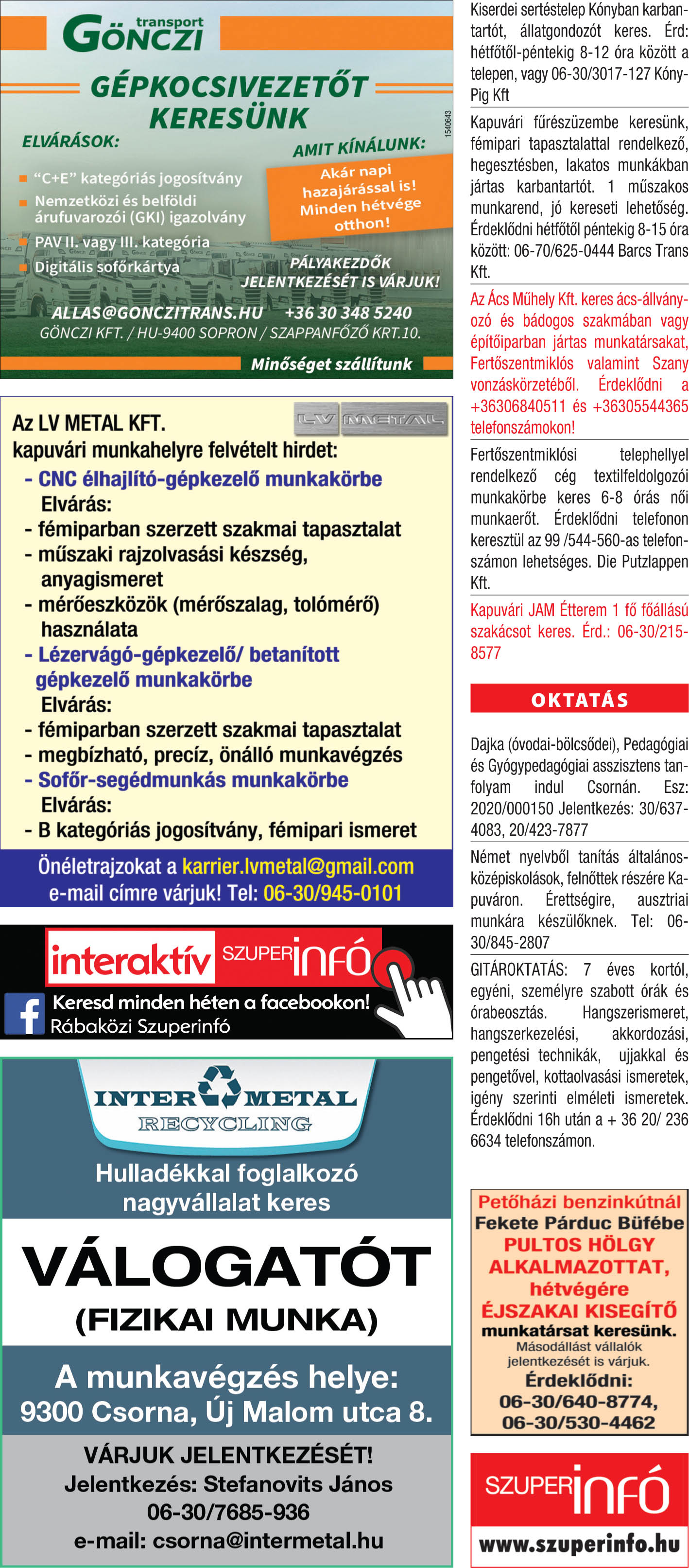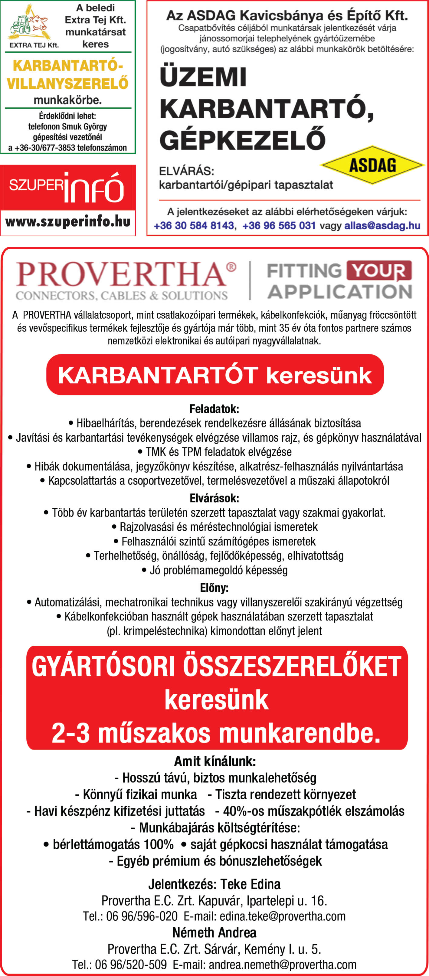 Állásajánlatok a heti Szuperinfóból