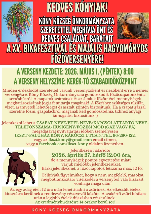 Főzőverseny felhívás a Kónyi Bikafesztiválra