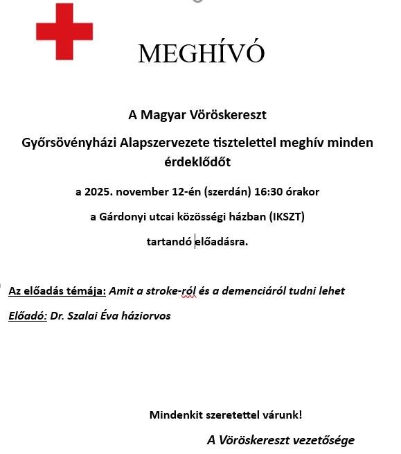 Előadás a stroke-ról és a demenciáról Győrsövényházon