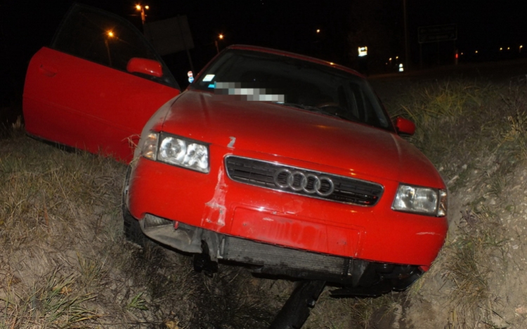 A bejelentést követően a rendőrök a helyszín közelében, egy útmenti árokba borulva megtalálták a járművet, amiből kisegítették a 31 éves férfit. A sofőrrel szemben alkalmazott alkoholszonda pozitív értéket mutatott.