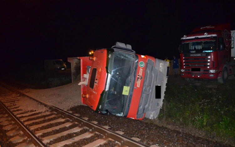 Felborult egy sóderszállító a farádi vasúti átjátóban