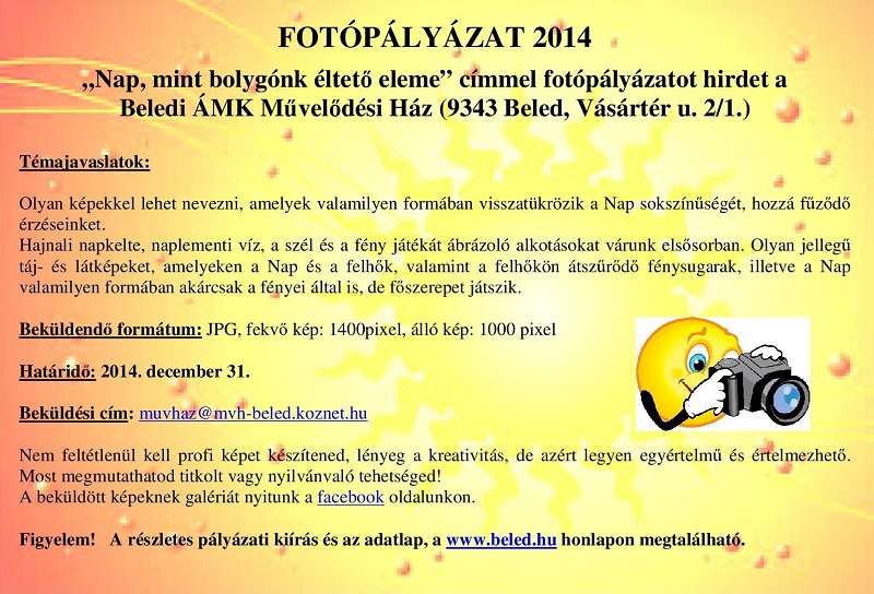 Nap, mint bolygónk éltető eleme - címmel fotópályázatot hirdet a beledi ÁMK