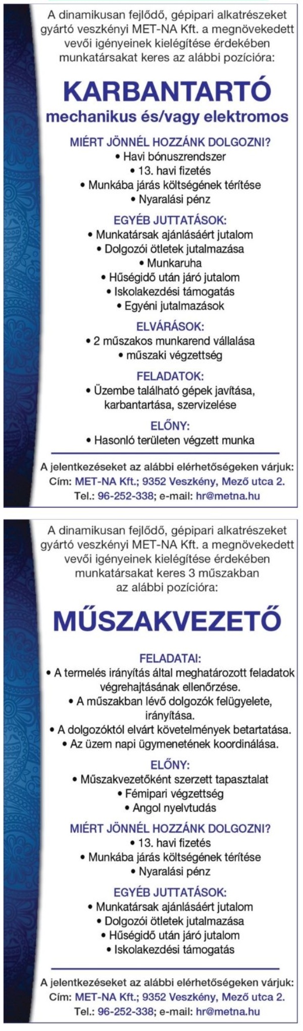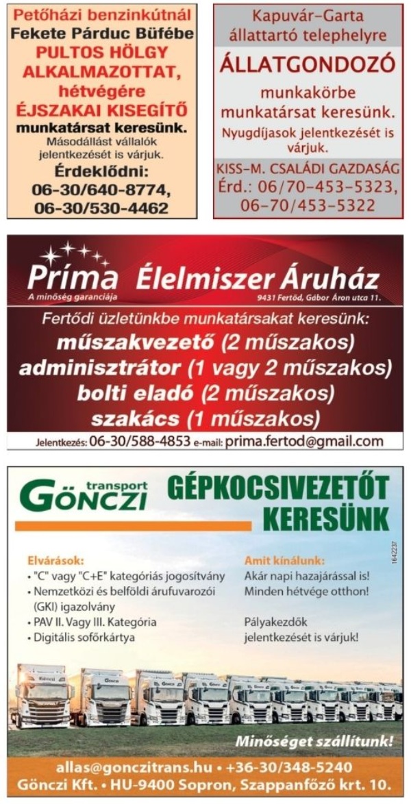 Heti állásajánlatok
