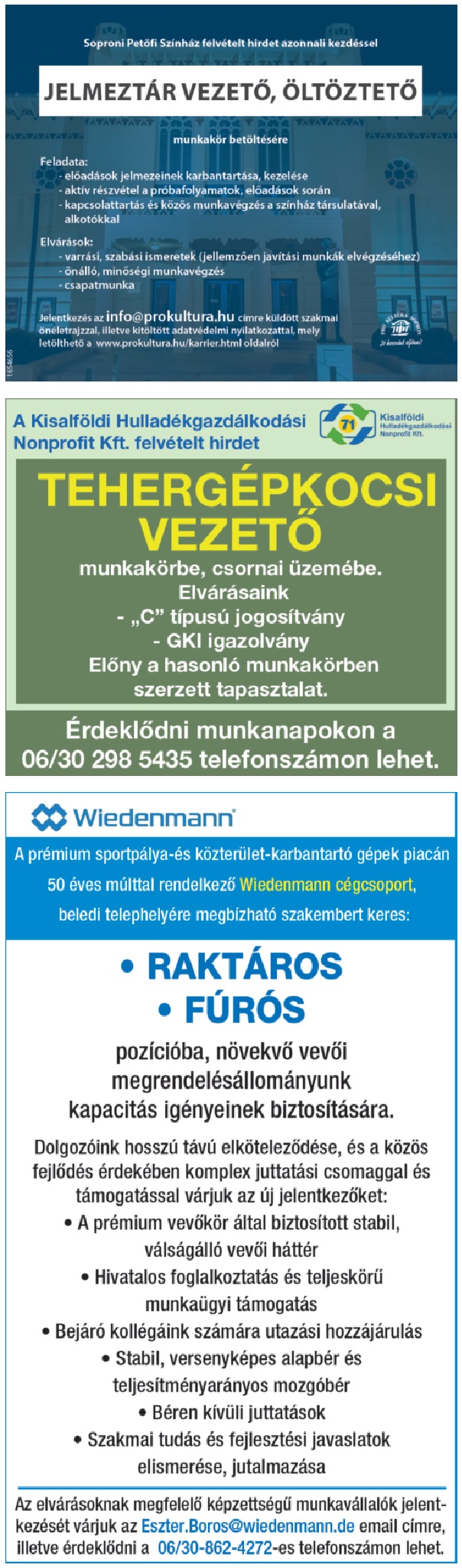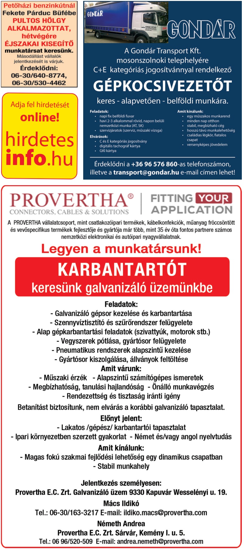 Heti állásajánlatok a Szuperinfóból.