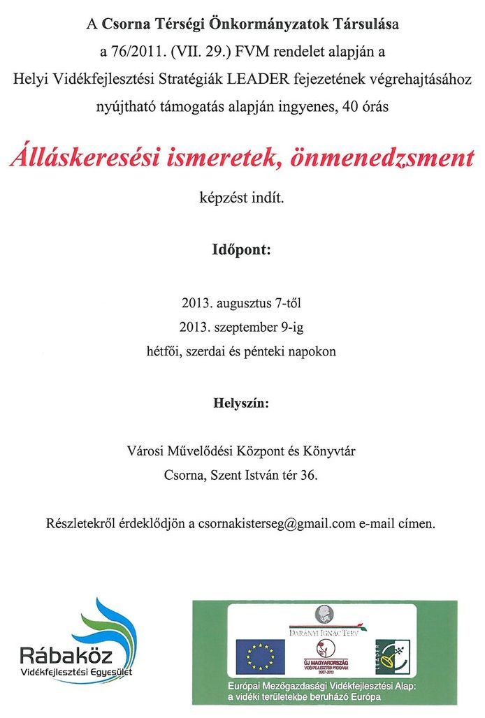 LEADER pályázat által támogatott képzés a Csorna Városi Művelődési Központban