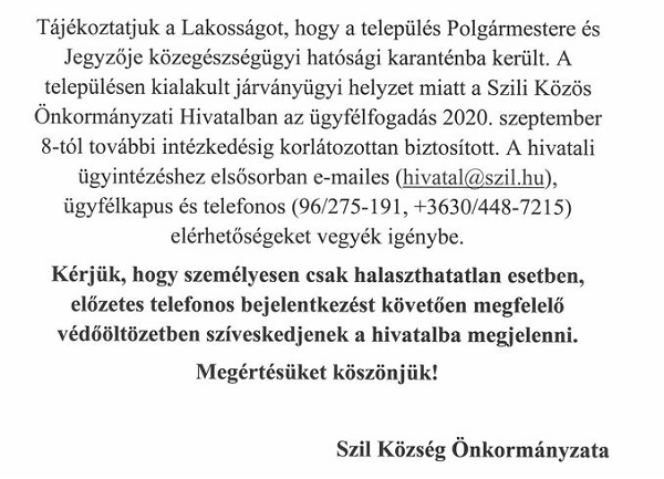 Járványügyi karanténba kényszerült Szil polgármestere és jegyzője