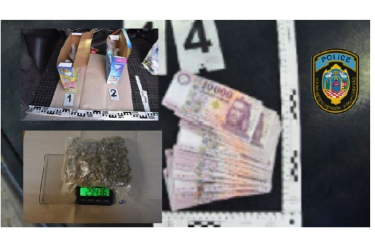 A rendőrségnek információja volt arról, hogy egy külföldről hazatérő munkásokat és csomagokat szállító járműben nagyobb mennyiségű kábítószer található. A kisbuszt ellenőrizték, és több mint egy kilogrammnyi marihuánát, metamfetamint és kokaint találtak benne. A drogok mellett félmillió forintot is lefoglaltak.