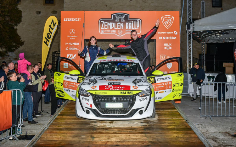 Sikeresen, kisebb kalandok árán, de átgurult a Peugeot-al a szerencsi várban megrendezett célceremónián a Juhász - Velezdi ralipáros.