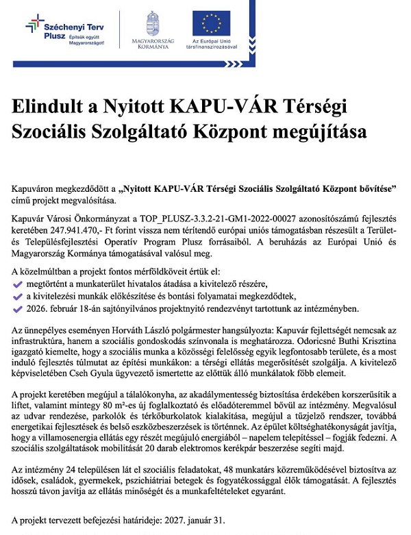 Forrás: Kapuvár Önkormányzat