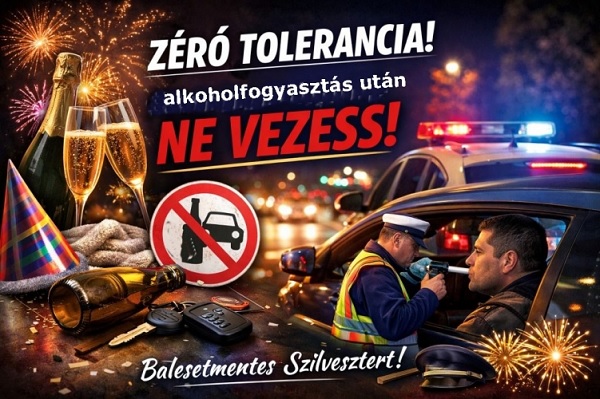 Az óév búcsúztatása és az új esztendő köszöntése sokak számára elképzelhetetlen ünneplés nélkül. A jó hangulat azonban könnyen veszélybe sodorhatja a résztvevőket, ha az alkoholfogyasztás és a járművezetés találkozik.