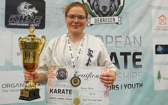 - A fiatalok teljesítménye most még kevés volt a dobogóhoz, még akkor is, ha a bírói hibákat leszámoljuk. Berta viszont nagyon céltudatosan menetelt előre és utasította maga mögé riválisait. A Világbajnokságot 4 évente rendezik. Szövetes Veronikának, és dr. Szepesi Csengének már sikerült dobogóra állnia Japánban. Azon fogunk dolgozni a hátralévő időben, hogy Berta is ott legyen a dobogón 2023-ban. - értékelte Sensei Pantelics Péter a kontinens viadal eredményeit.