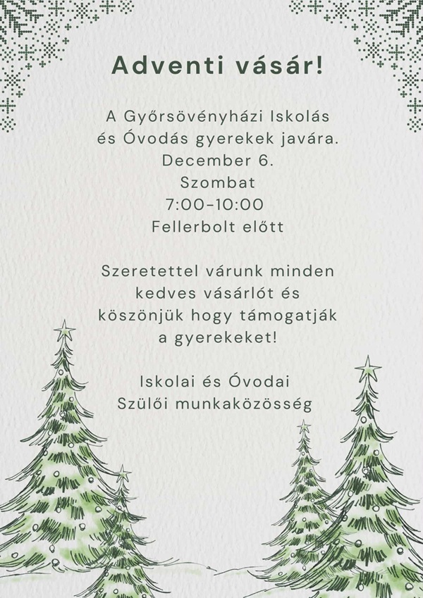 Adventi vásár a győrsövényházi iskolás és óvodás gyerekek javára.
