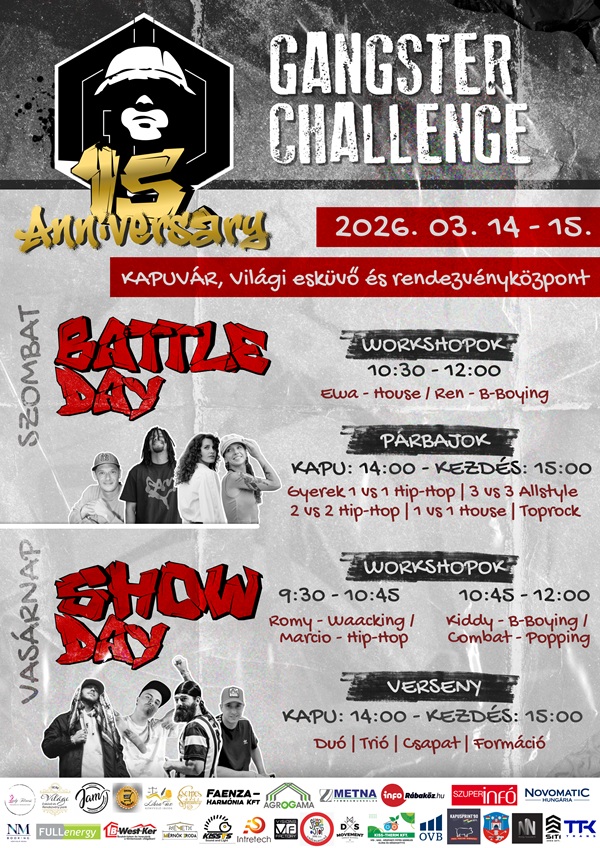 Kétnapos rendezvény workshopokkal, párbajokkal és versenyekkel.