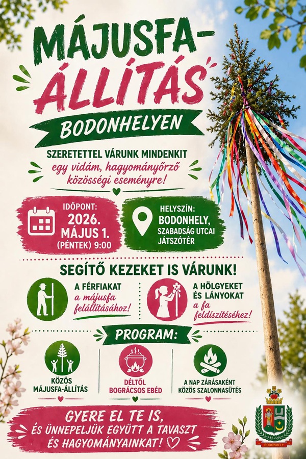 Májusfa állítás Bodonhelyen